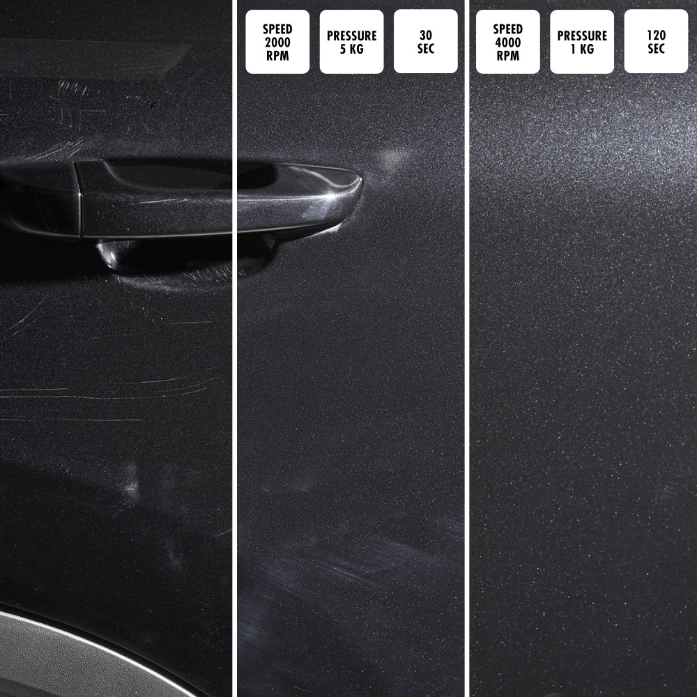 - für einstufigen Prozess mit perfektem, hologrammfreien Glanz. Höchst effektive Kratzerentfernung