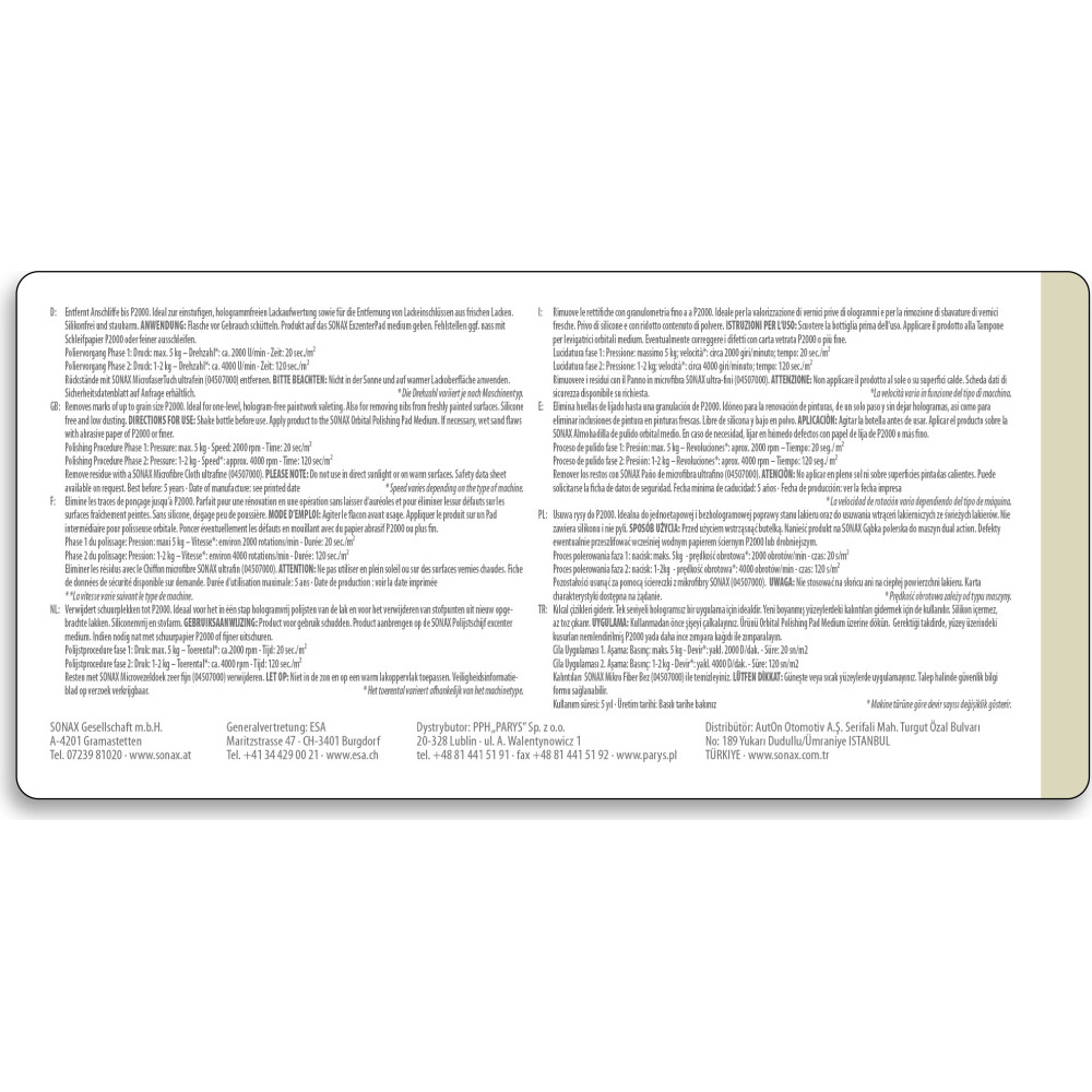 - Entfernt Anschliffe bis Körnung P2000 oder feiner.