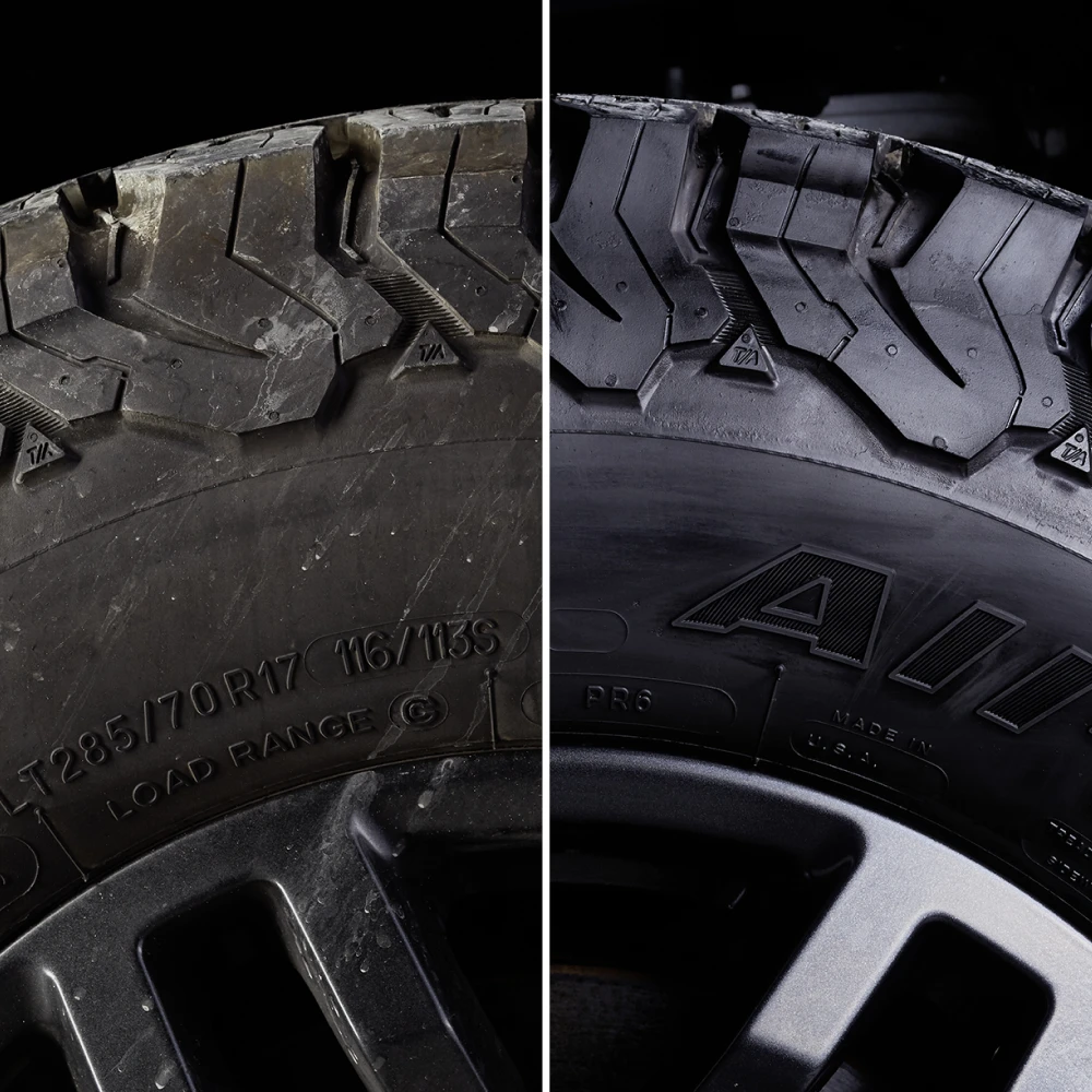 - Sorgt für Farbauffrischung und Tiefenglanz. Verwitterte Reifen erhalten ihre satte Farbe und den ursprünglichen Glanz zurück.