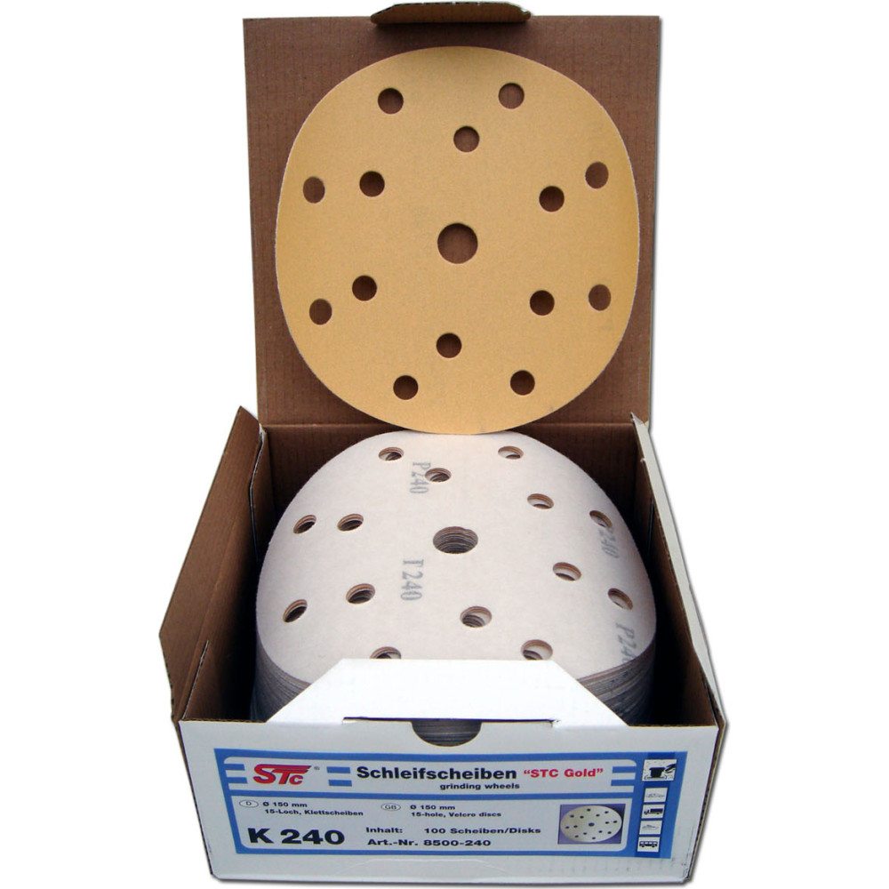 STC Schleifscheibe Gold (150 mm, 15 Loch, Klett), 240er Körnung | 8500240