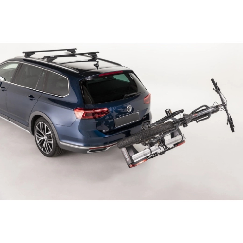 Neuer zusammenklappbare AHK-Fahrradträger aus hochfestem Stahl mit breiten Radhalterschienen aus Aluminium. Kompakt und leicht ist Antares für Fahrräder jeder Art geeignet, auch E-Bikes und Fat Bikes. Mit praktischem Fußpedal-Abklappmechanismus und Schnellverschlusssystem ausgestattet. Doppelte Diebstahlsicherung für Fahrräder und Fahrradträger selbst inklusive.