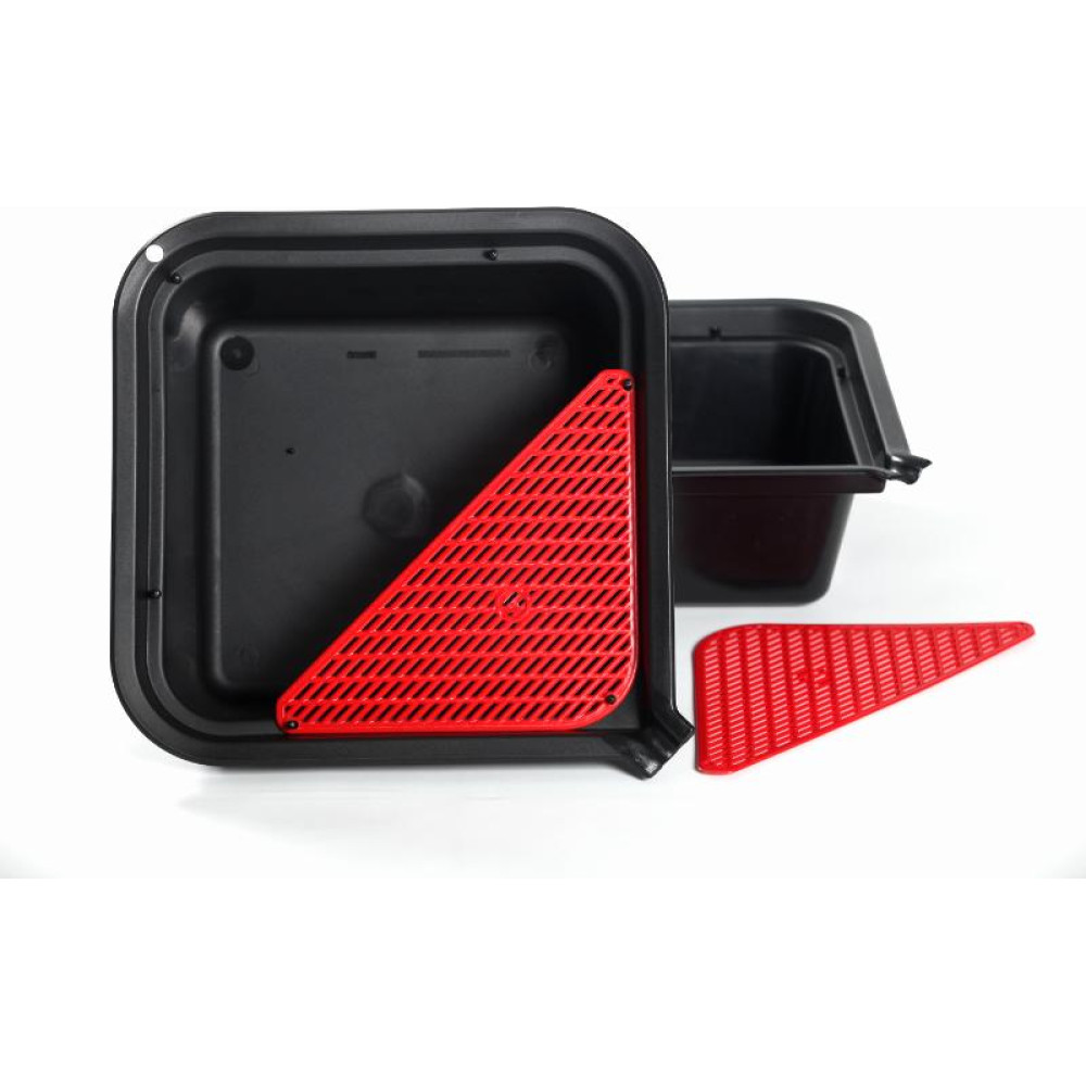 Ölauffang-Wanne 7,0 ltr. mit rotem Sieb, Ausguß und Aufhängeöse, Schwarz