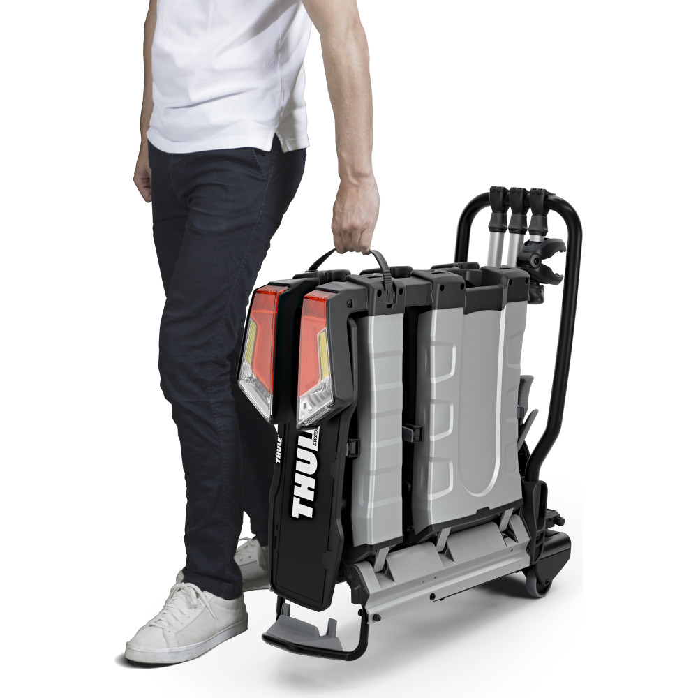 Der Thule EasyFold XT 3-Bike (Art.-Nr. 934100) ist ein robuster, faltbarer Anhängerkupplungs-Fahrradträger für bis zu 3 Fahrräder – inklusive schwerer E-Bikes und Mountainbikes.