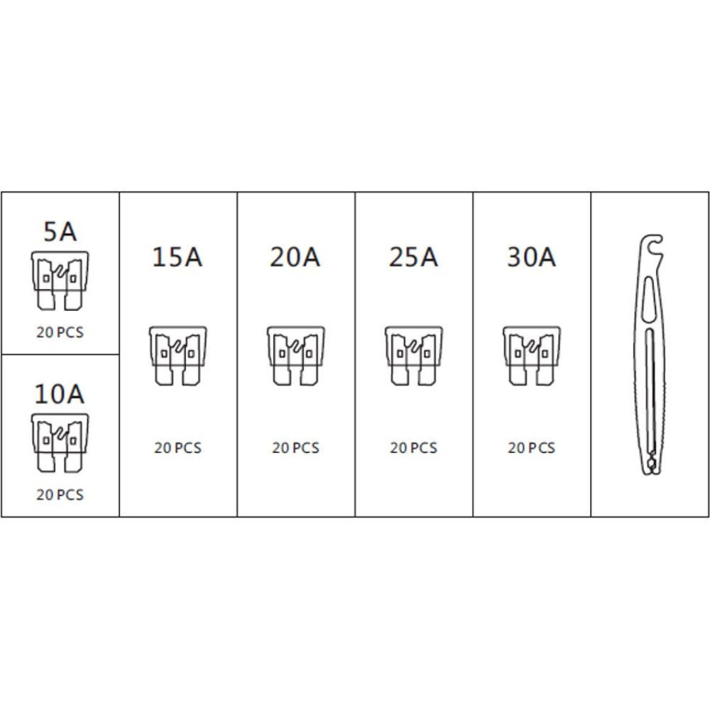 03.1004 Satz Sicherungäw Mini, 121 Stück: 5A, 10A, 15A, 20A, 25A, 30A