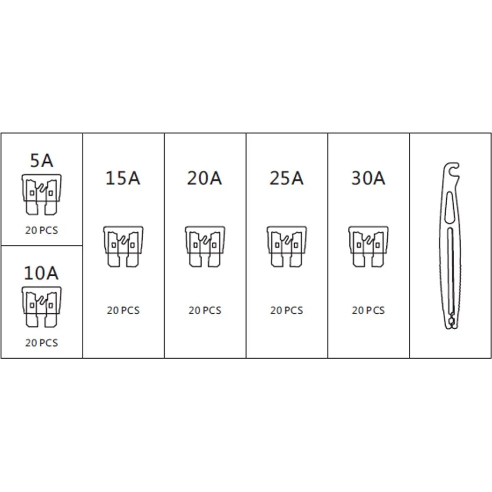 Satz Sicherungäw Mini, 121 Stück: 5A, 10A, 15A, 20A, 25A, 30A 03.1004