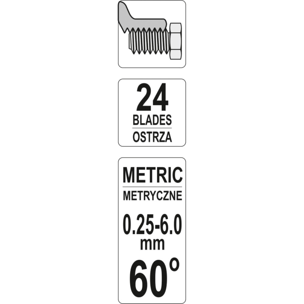 YT-29980 Gewinde-Messlehre Metrisch 60Ï Steigung 24 Blatt