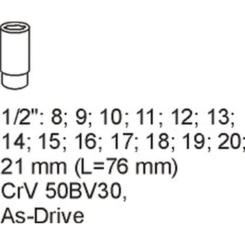 YT-5539 Steckschlüssel Lang 14-Tlg. 1/2 8-21mm In Schubladeneinlage