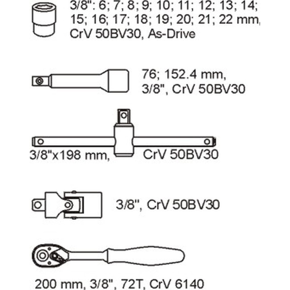 YT-5542 Knarrenkasten 3/8 6-22Mm 22-Tlg. In Schubladeneinlage