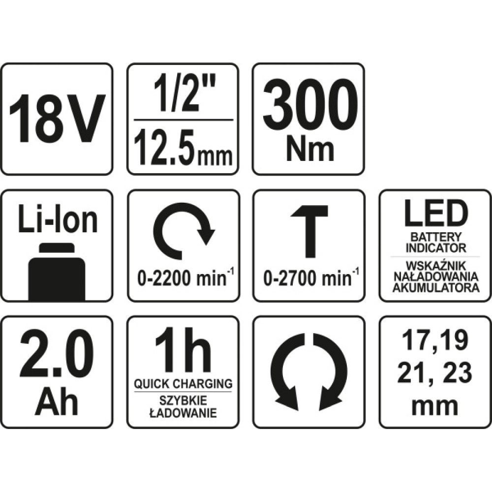 YT-82804 Akku-Schlagschrauber 18V 1/2 Max 300Nm 2200 1/Min Im Koffer Inkl. 1X2,0 Ah Li-Ion