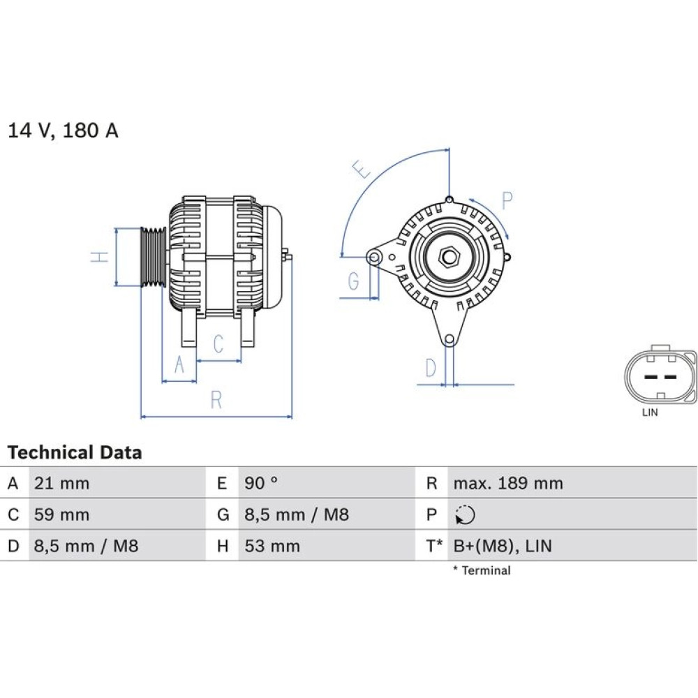 | Klemme | B+(M8),LIN |