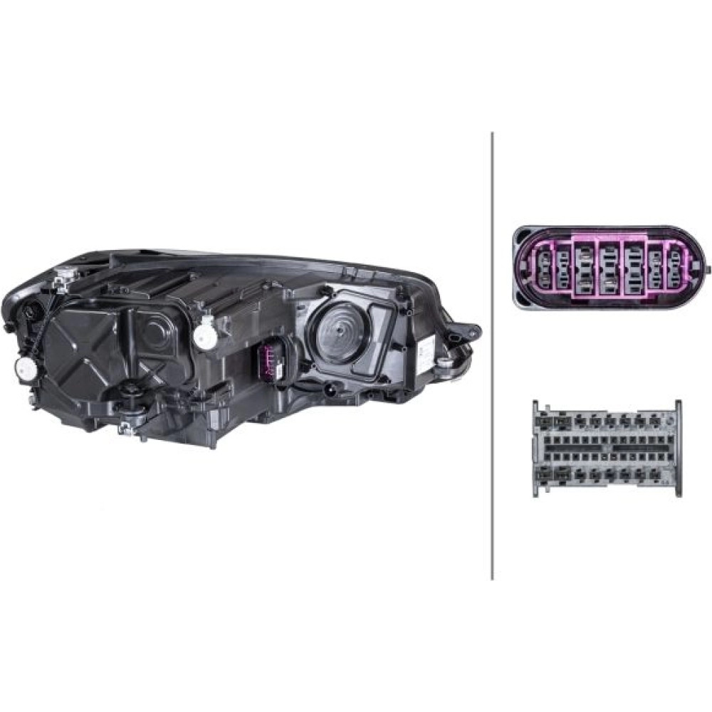 | Zusatzinformation | ohne LED-Steuergerät für Abblend-/Fernlicht ohne LED-Steuergerät für Blinklicht ohne LED-Steuergerät für Tagfahr-/Positionslicht ohne Steuergerät für Kurvenscheinwerfer (AFS) mit Stellmotor für LWR |