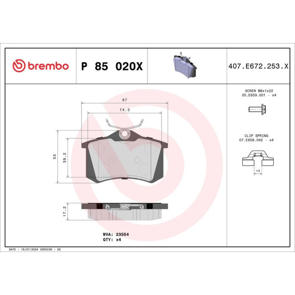 BREMBO Bremsklötze Xtra AUDI CITROEN FORD SEAT SKODA VW XTRA LINE P 85 020X