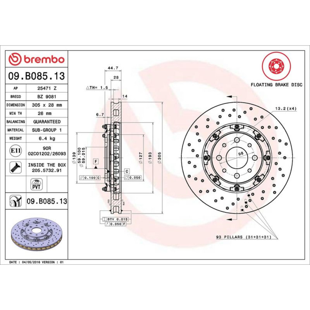 40 481 067 Brembo PREMIUM VA zweiteilig FIAT 500 Abarth 07 PRIME LINE - Floating 09.B085.1340 481 067 Brembo PREMIUM VA zweiteilig FIAT 500 Abarth 07 PRIME LINE - Floating 09.B085.13
