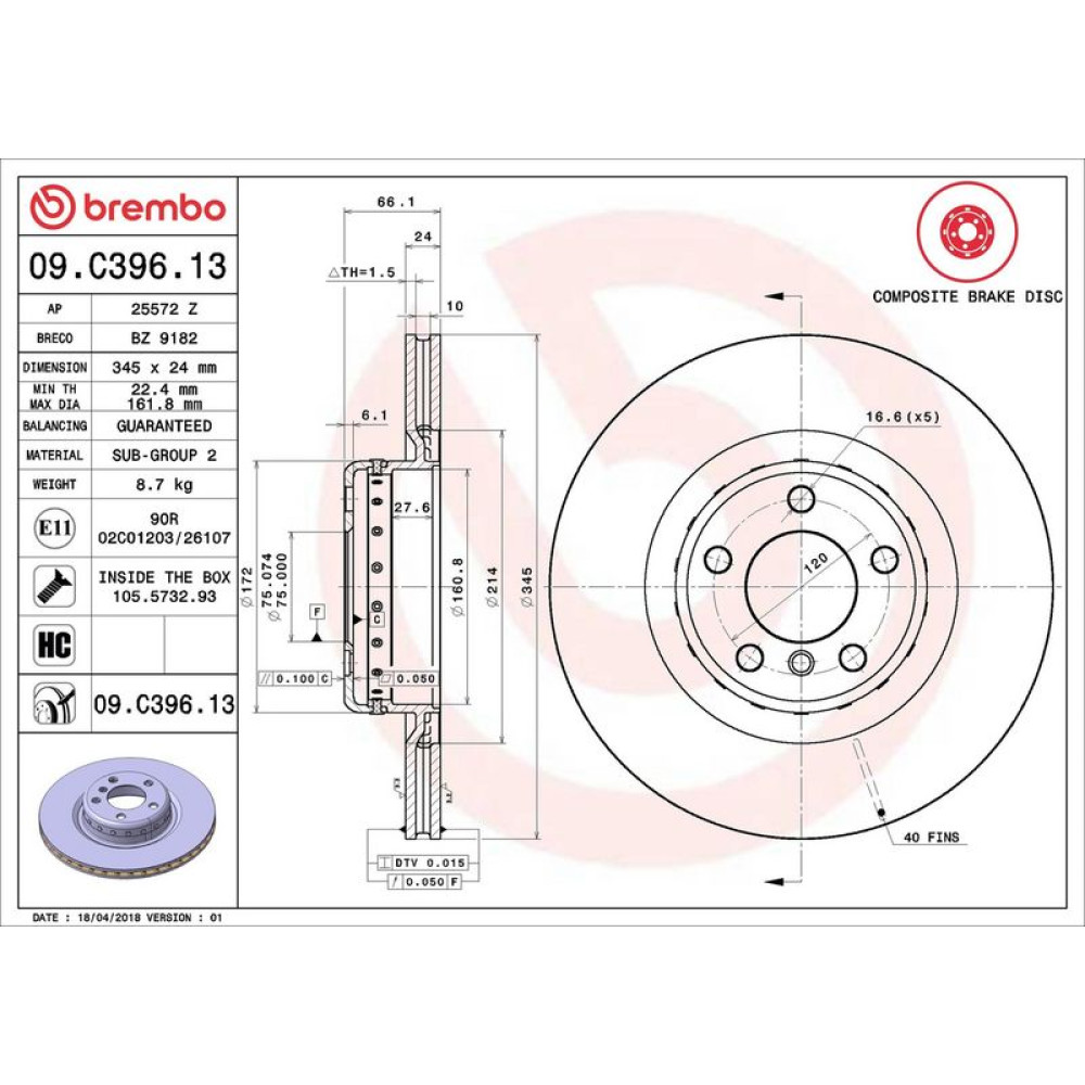 11 482 092 Brembo PREMIUM HA zweiteilig BMW 1er, 2er, 3er, 4er 10 PRIME LINE - Composite 09.C396.1311 482 092 Brembo PREMIUM HA zweiteilig BMW 1er, 2er, 3er, 4er 10 PRIME LINE - Composite 09.C396.13
