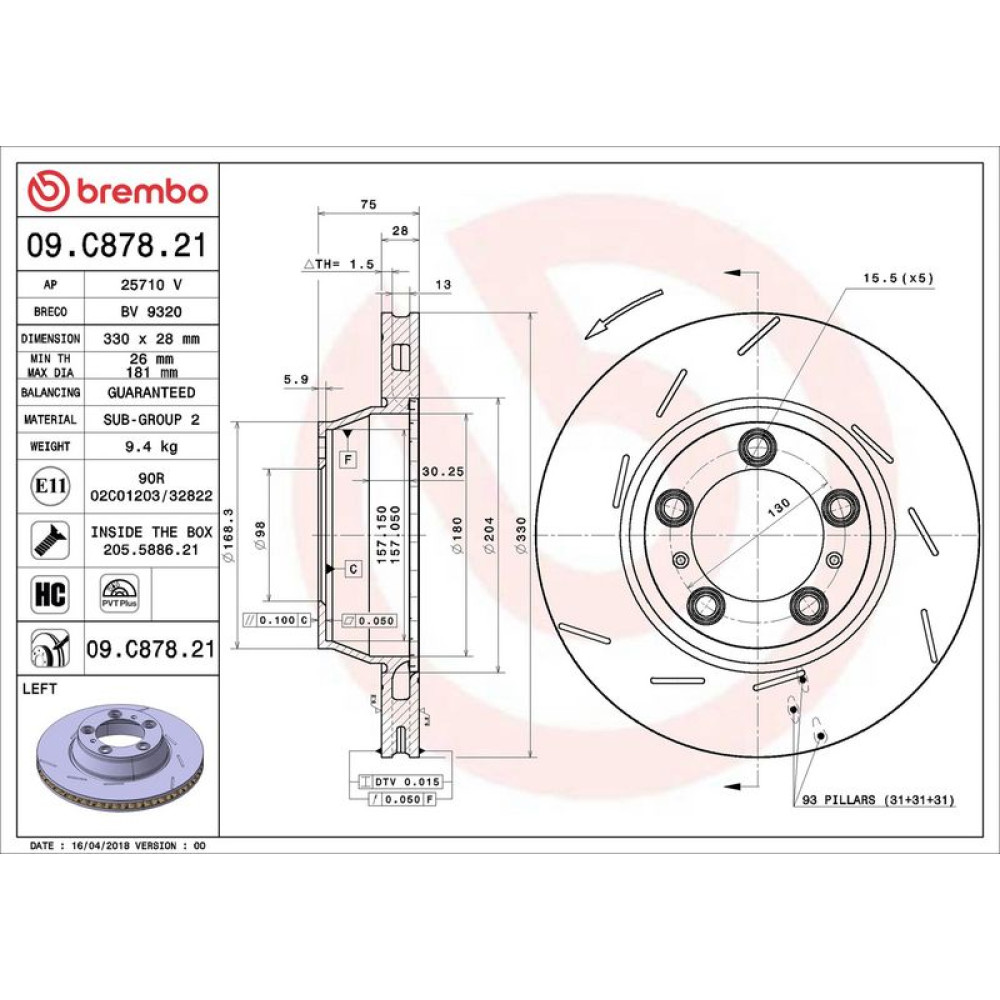 | paarige Artikelnummer | 13 482 013 Bremsscheibe HA re PORSCHE Panamera 09 PRIME LINE - UV Coated 09.C878.31 |