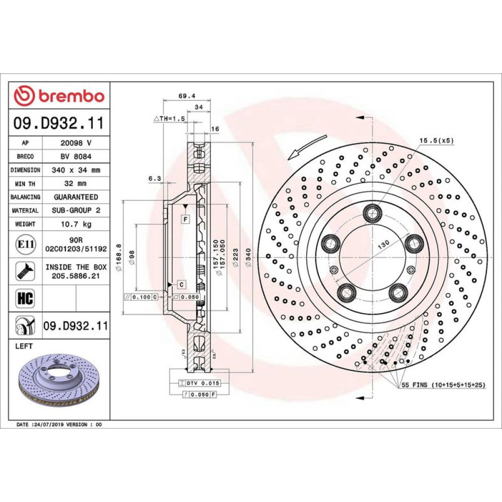 | paarige Artikelnummer | Bremsscheibe VA re PORSCHE PRIME LINE - UV Coated 09.D933.11 |