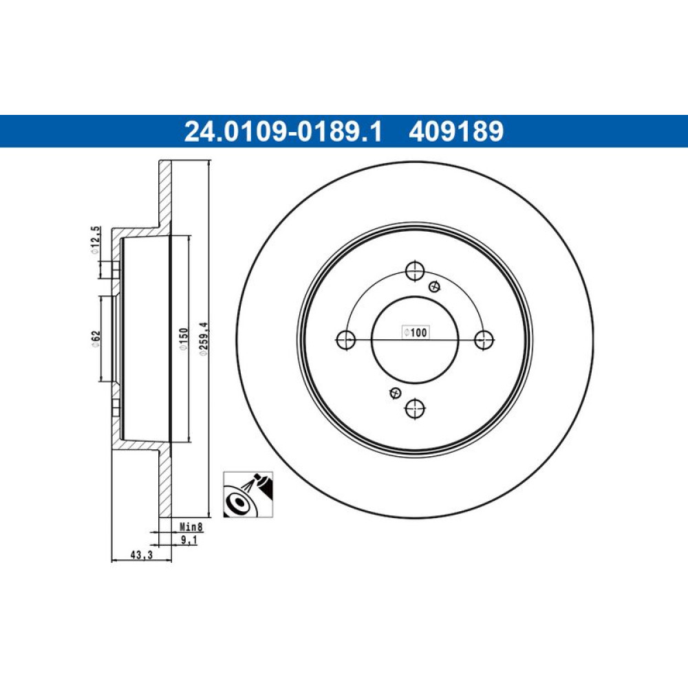 ATE Bremsscheibe 24.0109-0189.1