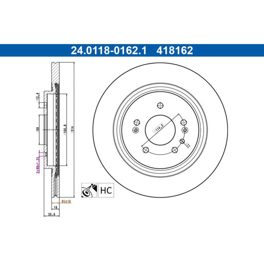ATE Bremsscheibe 24.0118-0162