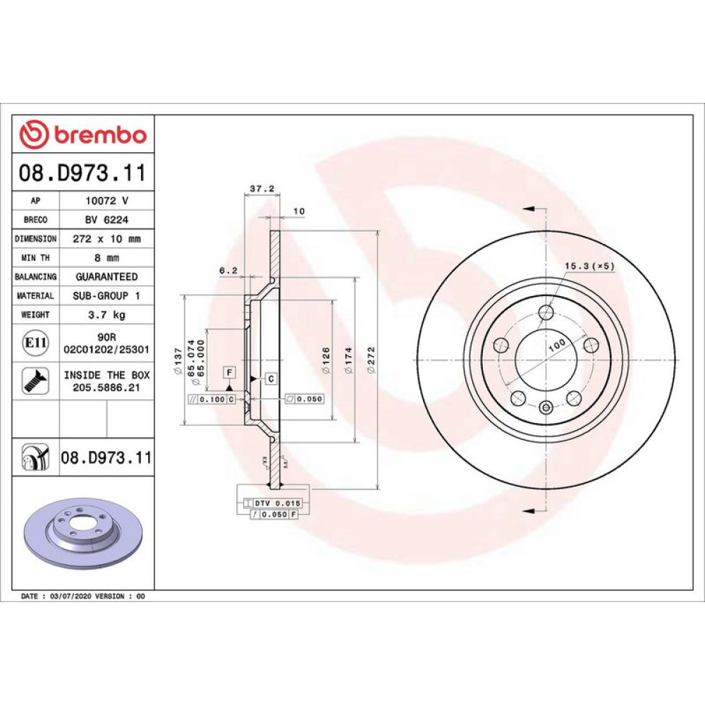Bremsscheibe HA AUDI A1,VW 18 PRIME LINE - UV Coated 08.D973.11