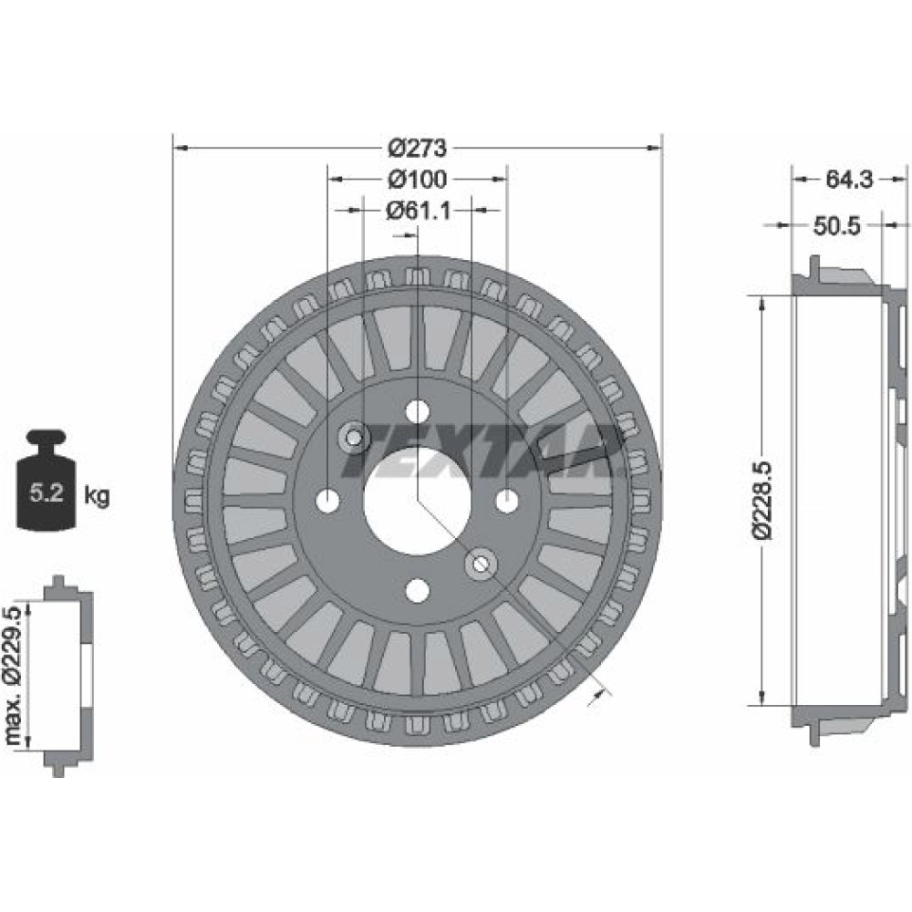 | Bremstrommeldurchmesser außen [mm] | 273 |
