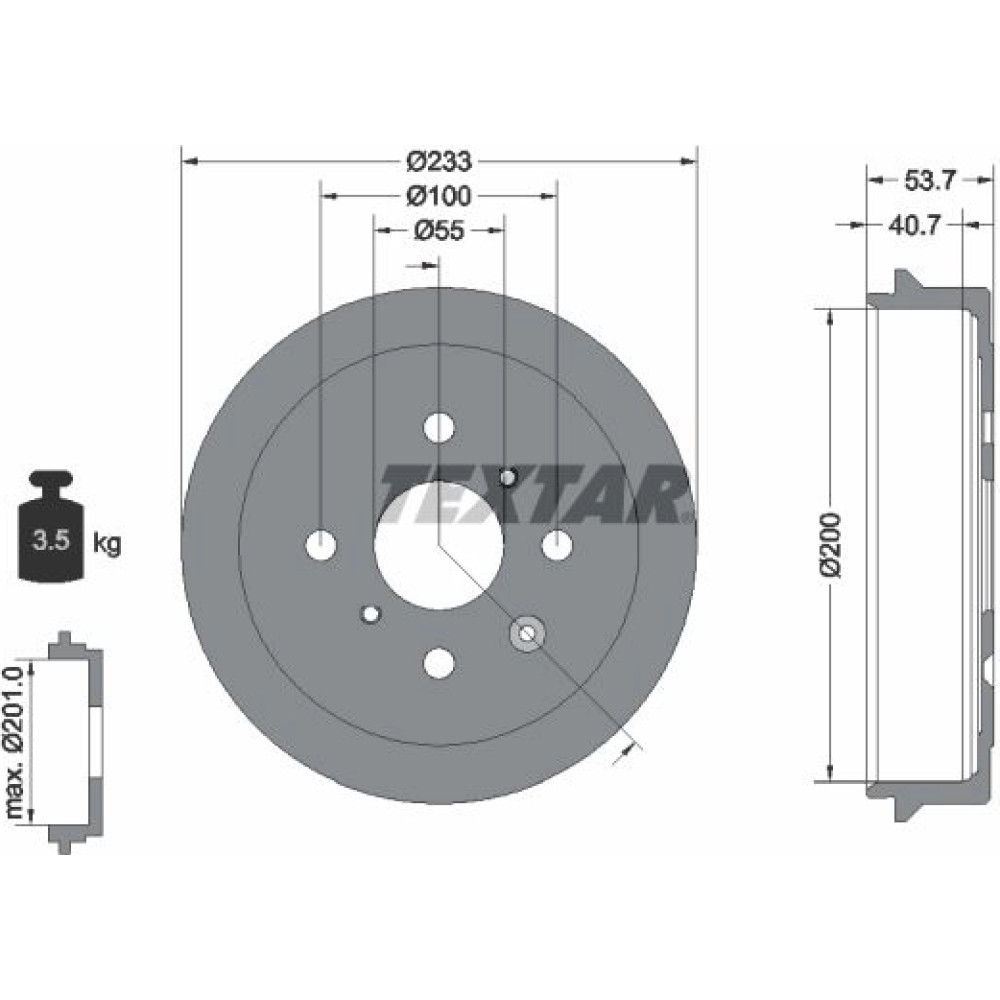 | Bremstrommeldurchmesser außen [mm] | 233 |
