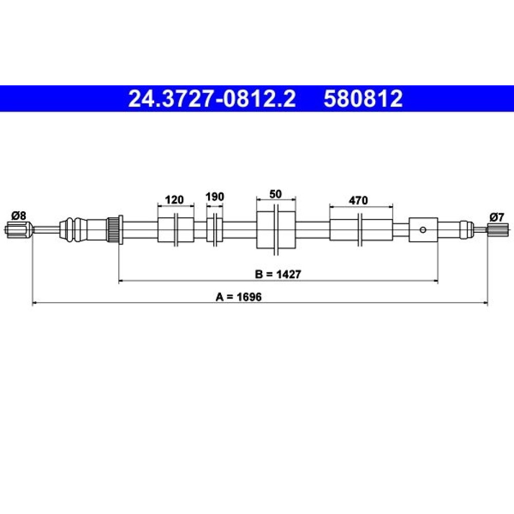 ATE Handbremsseil Seilzug Festellbremse 24.3727-0812.2