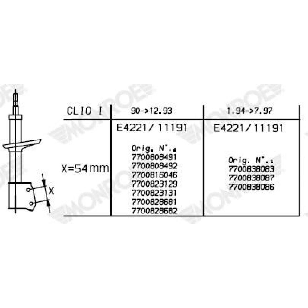 MONROE ORIGINAL-Öldämpfer VA | RENAULT Clio 1.1-1.9D 90-97 | 11191