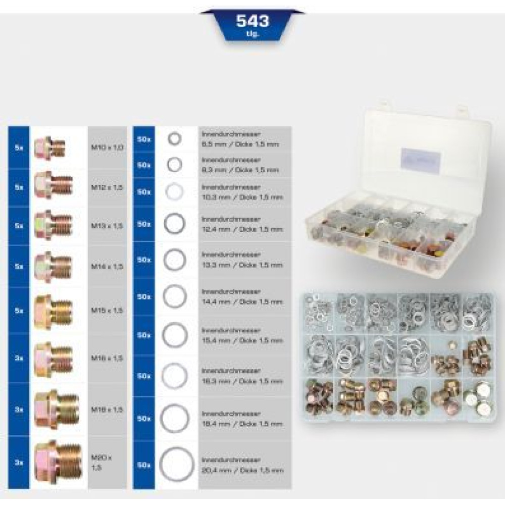 BRILLIANT TOOLS Sortiment an Ölablassschrauben und Dichtungen 543-teilig BT711200