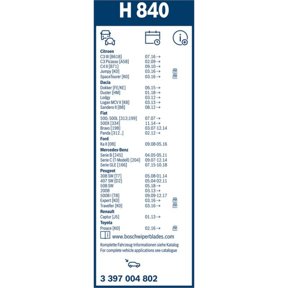 | Bosch Automotive | 3 397 004 630 |