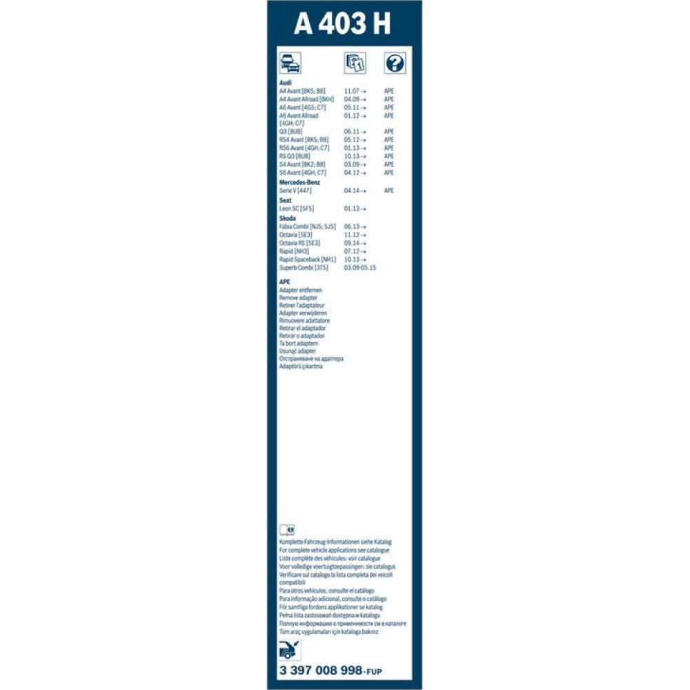 3 397 008 998 Wischblatt Rear Aerotwin