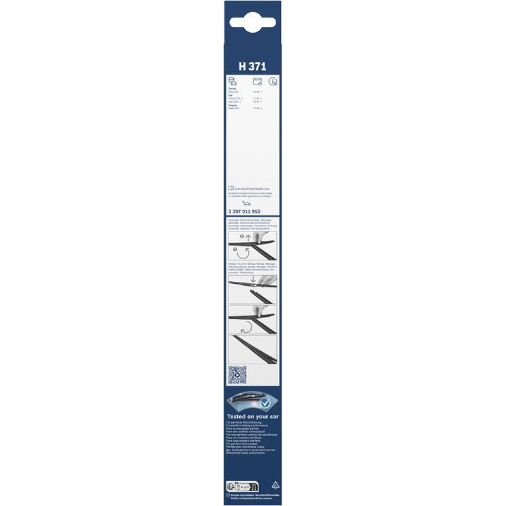 BOSCH | Wischerblatt H371 | Citroen, Fiat, Peugeot Bipper | 3397011953