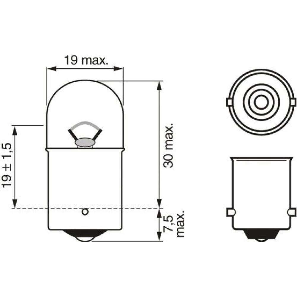 | Sockelausführung Glühlampe | BA15s |