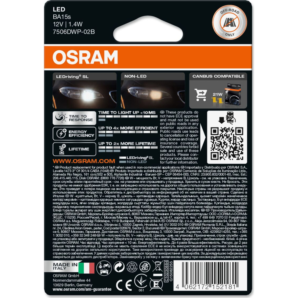 Erlebe eine moderne und langlebige Fahrzeugbeleuchtung mit der P21W LEDriving SL White 6000K 12V von OSRAM, die Deinem Fahrzeug eine klare und zeitgemäße Ausstrahlung verleiht.