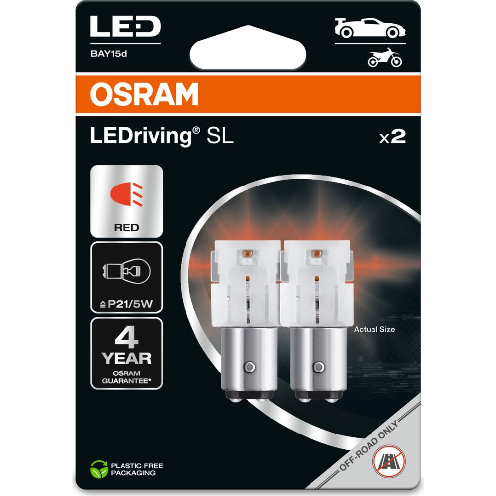 Mit der PR21/5W LEDriving SL Red 12V von OSRAM erhöhst Du die Sicherheit Deines Fahrzeugs durch eine zuverlässige, langlebige und effiziente Signalleuchte.