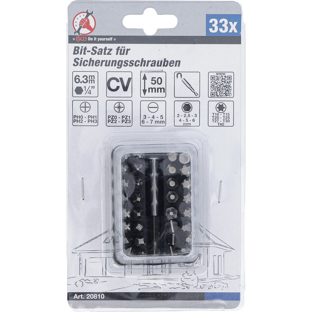 BGS Bit-Satz für Sicherungsschrauben Antrieb Außensechskant 6,3 mm (1/4 ) 33-tlg BGS Do it yourself 20810