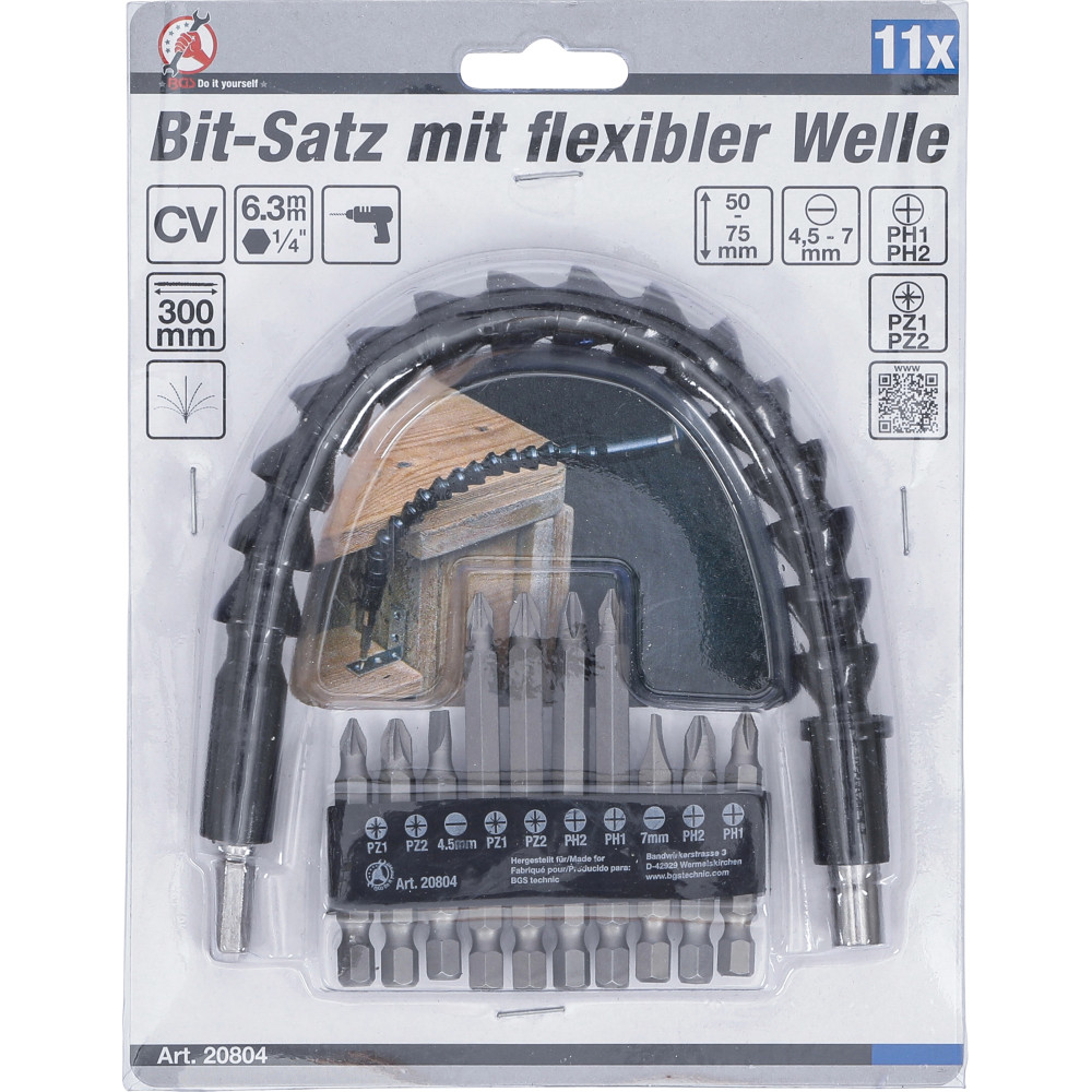 BGS Bit-Satz mit flexibler Welle Antrieb Außensechskant 6,3 mm (1/4 ) 11-tlg BGS Do it yourself 20804