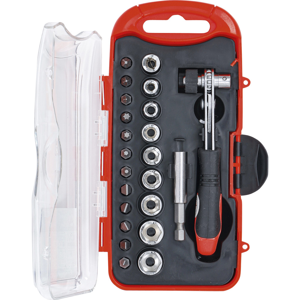 - 1 Bit-Knarre, umschaltbar, Abtrieb Innensechskant 6,3 mm (1/4"), Außenvierkant 6,3 mm (1/4")