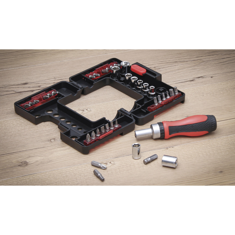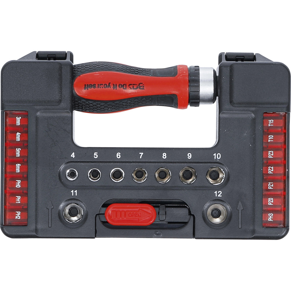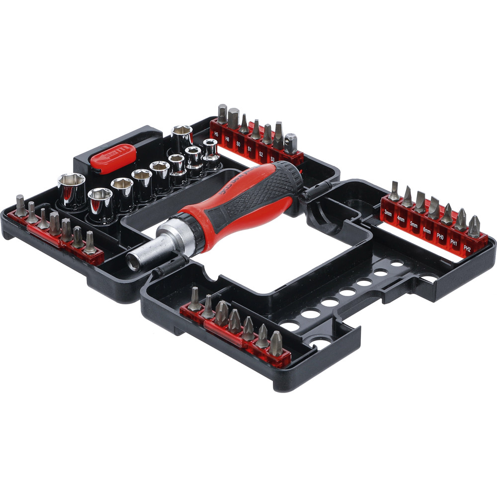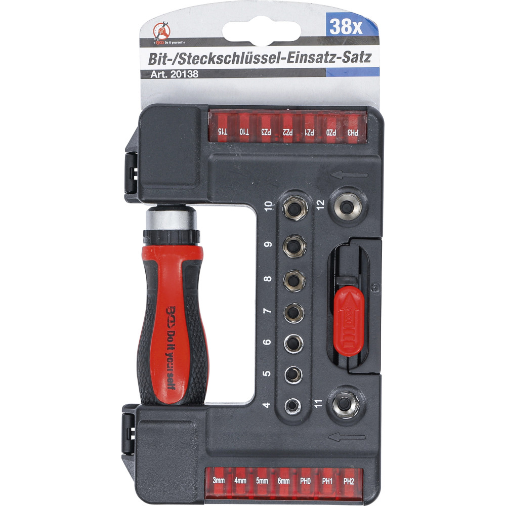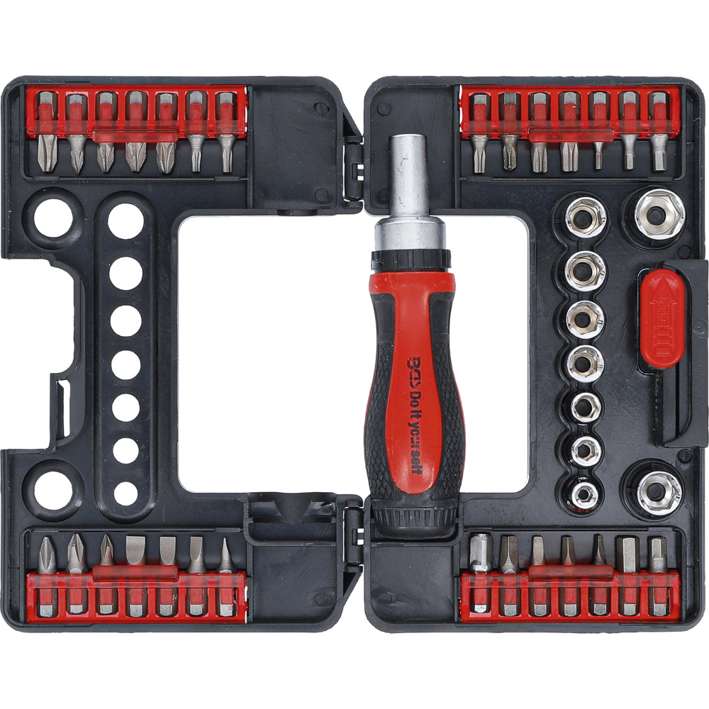 BGS Bit-/Steckschlüssel-Einsatz-Satz mit Ratschen-Drehgriff für Bits, umschaltbar 38-tlg BGS Do it yourself 20138