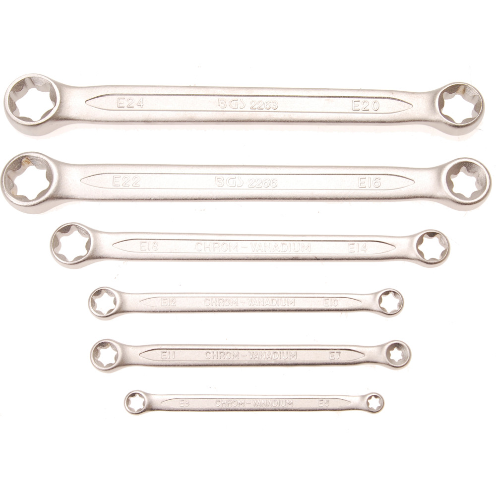 BGS Doppel-Ringschlüssel-Satz mit E-Profil-Ringköpfen SW E6 x E8 - E20 x E24 6-tlg 2268
