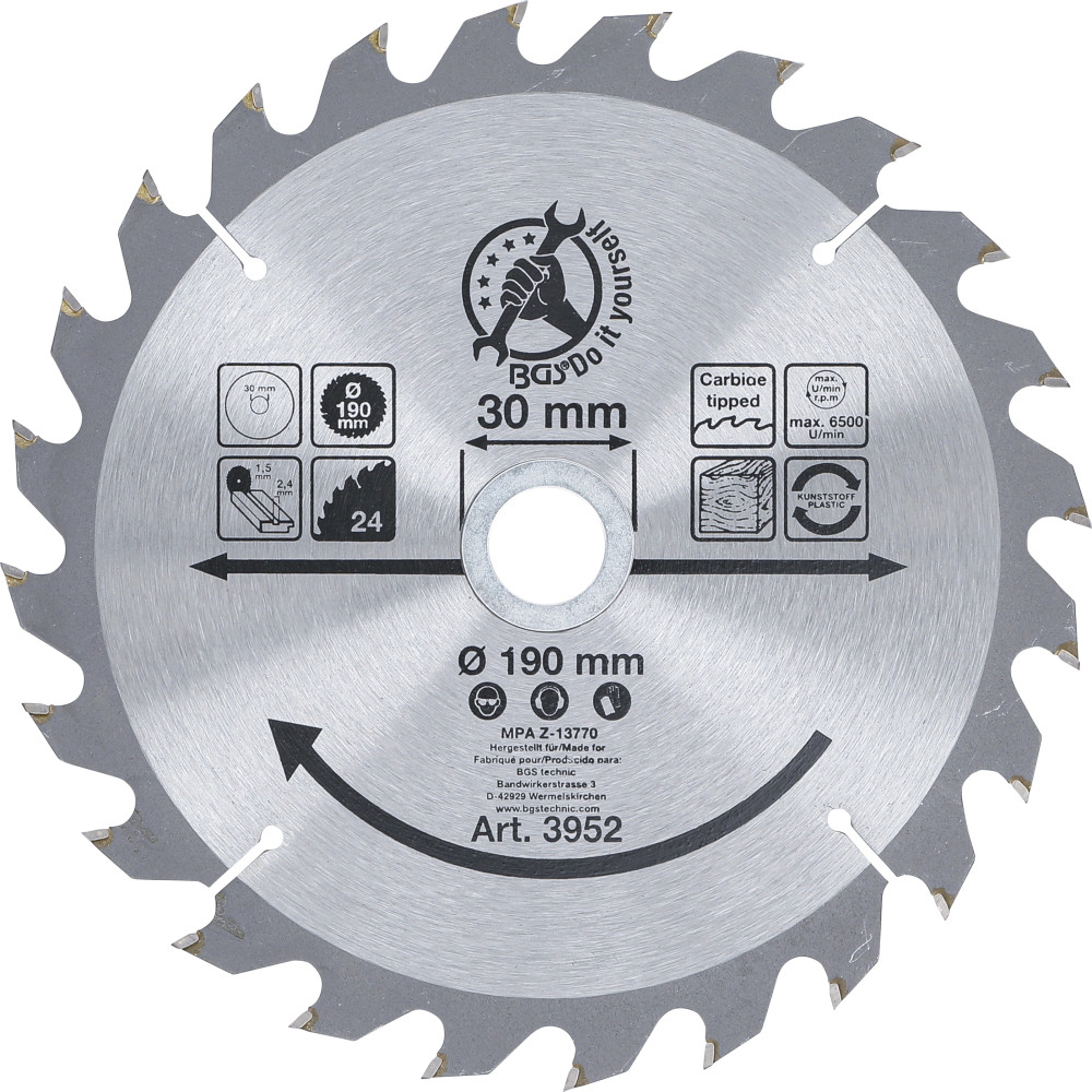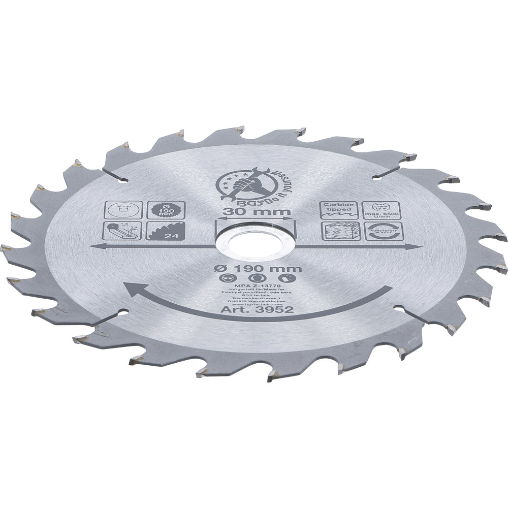 BGS Hartmetall-Kreissägeblatt Ø 190 x 30 x 2,5 mm 24 Zähne BGS Do it yourself 3952