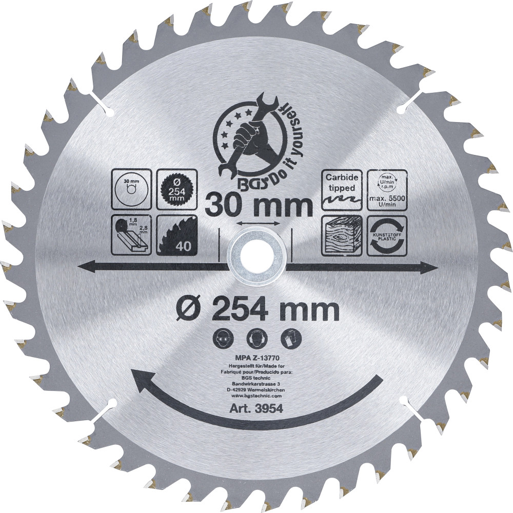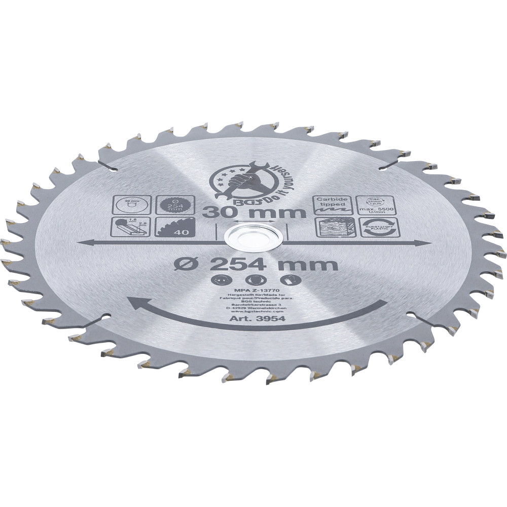 BGS Hartmetall-Kreissägeblatt Ø 254 x 30 x 3,2 mm 40 Zähne BGS Do it yourself 3954