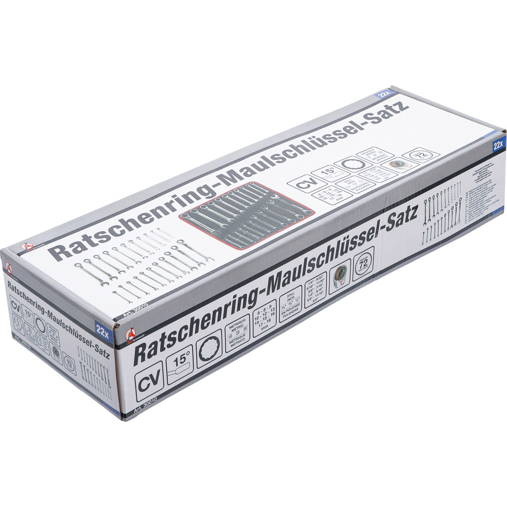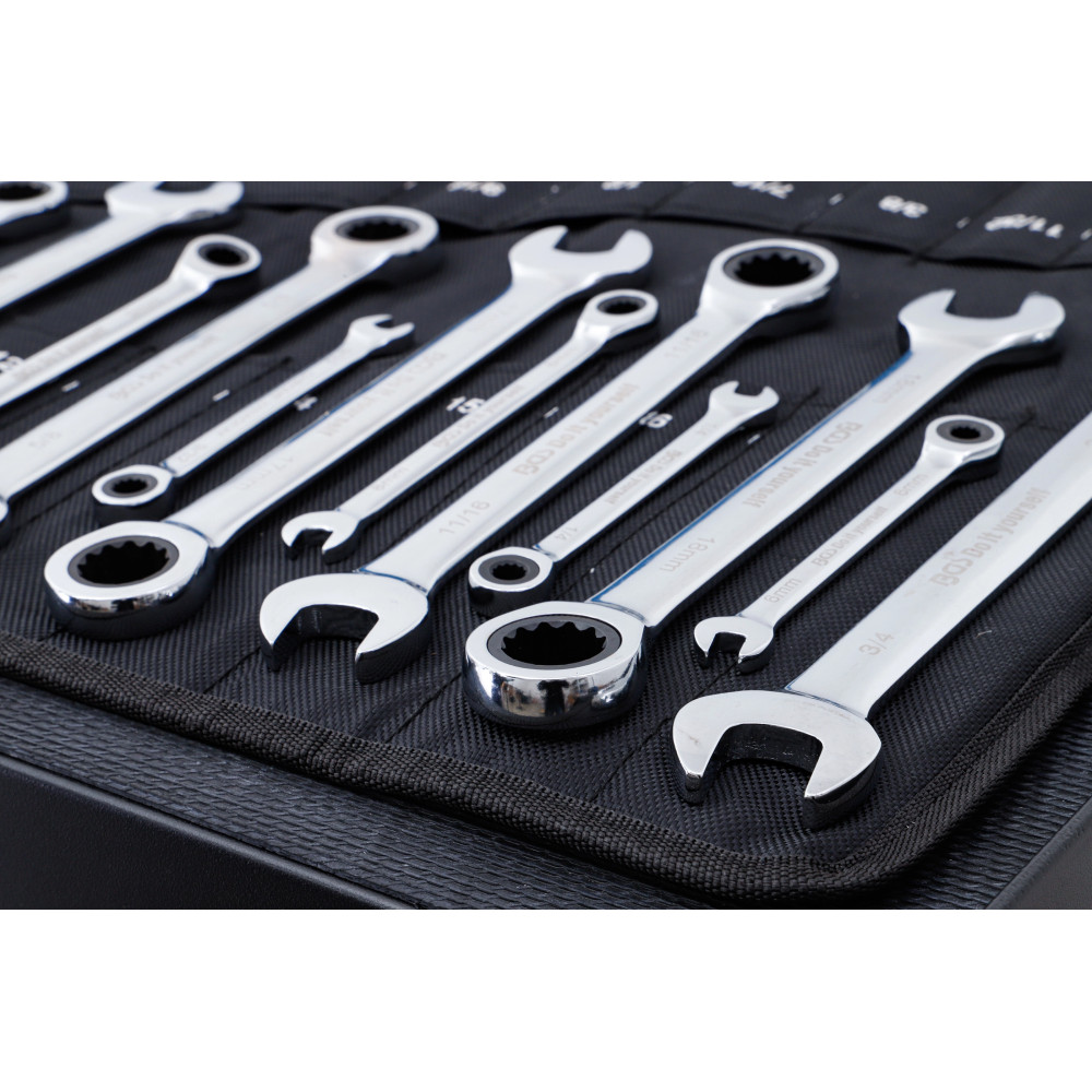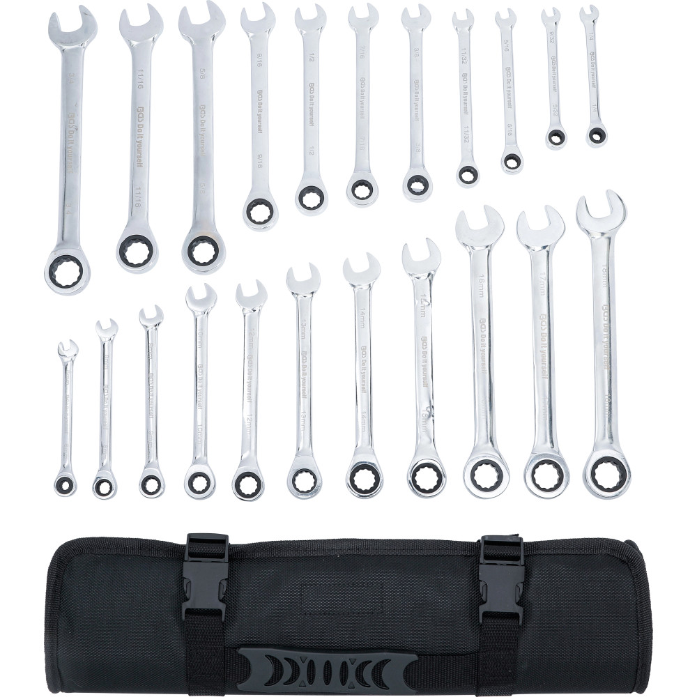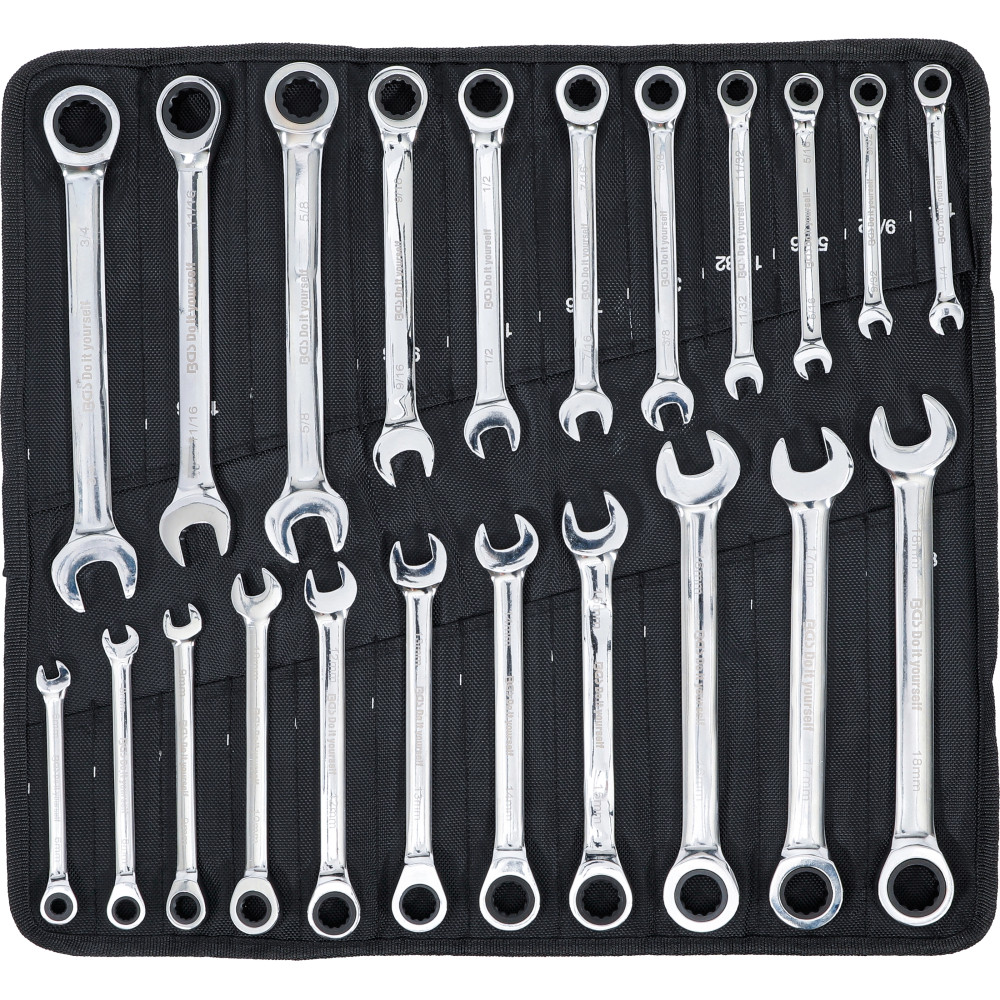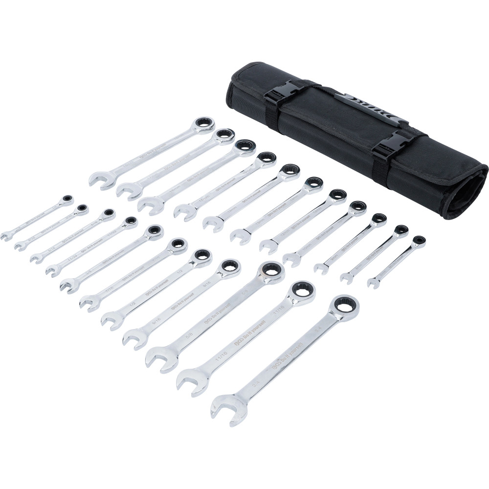 BGS Ratschenring-Maulschlüssel-Satz metrisch / Zollgrößen 22-tlg BGS Do it yourself 30010