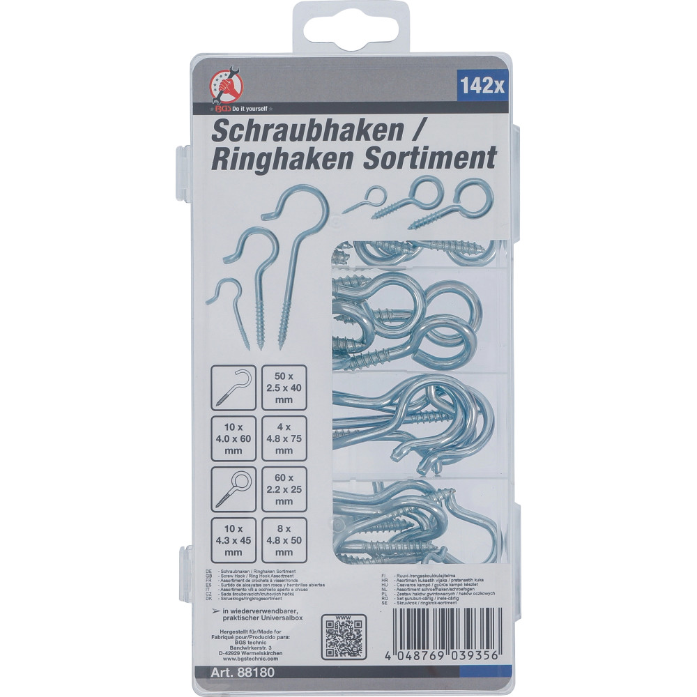 BGS Schraubhaken / Ringhaken Sortiment 142-tlg BGS Do it yourself 88180