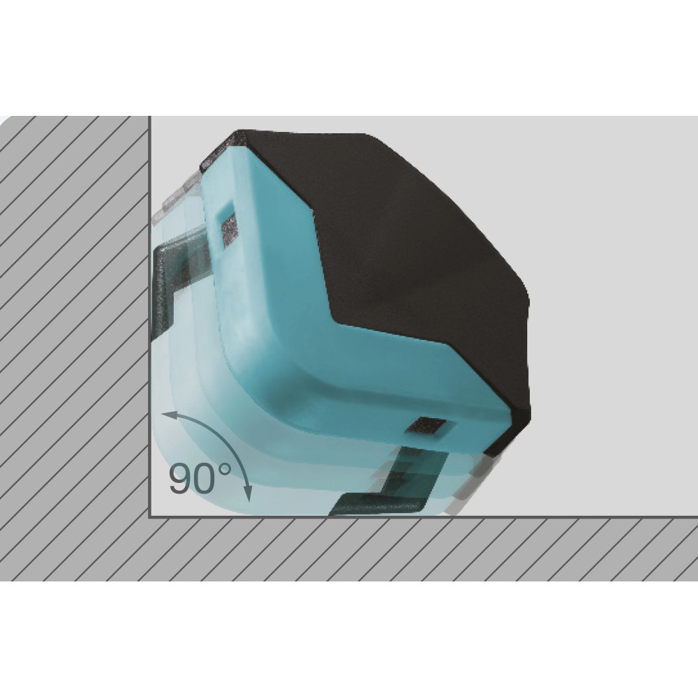 - klappbarer Standfuß für genaue 90° Eckenführung und zusätzlichen Halt