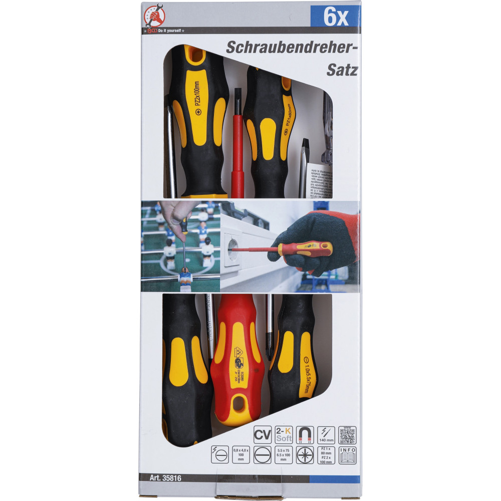 BGS VDE-Elektriker- / Schraubendreher-Satz Schlitz / Kreuzschlitz 6-tlg BGS Do it yourself 35816