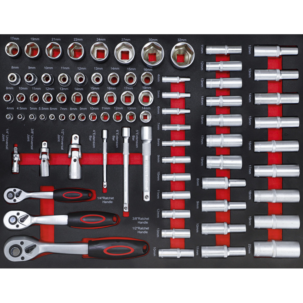 Steckschlüssel-Satz, Antrieb Innenvierkant 6,3 mm (1/4"), 10 mm (3/8"), 12,5 mm (1/2"), 80-tlg.