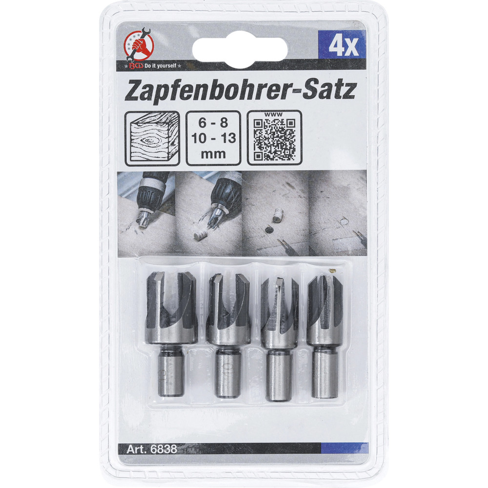 Beinhaltet vier Zapfenbohrer mit folgenden Maßen: