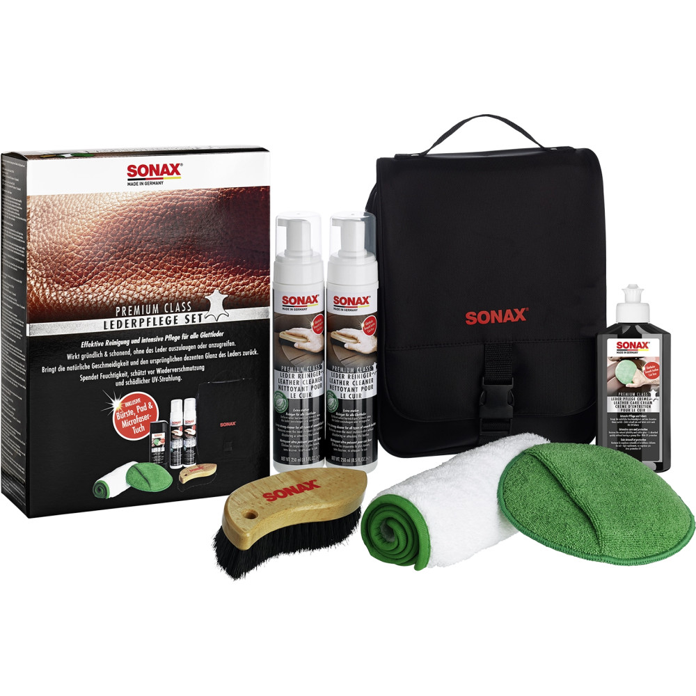 - 2 x SONAX PremiumClass LederReiniger (250 ml): Reinigt gründlich und schonend.