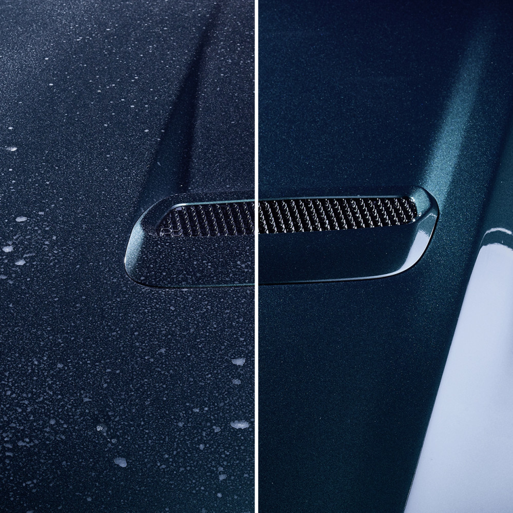 Reiniger zur Entfernung von eingetrockneten Kalk/Wasserflecken durch eingetrocknete Mineralsalze auf allen außenliegenden Fahrzeugoberflächen, auch auf Folierungen und Mattlacken.
