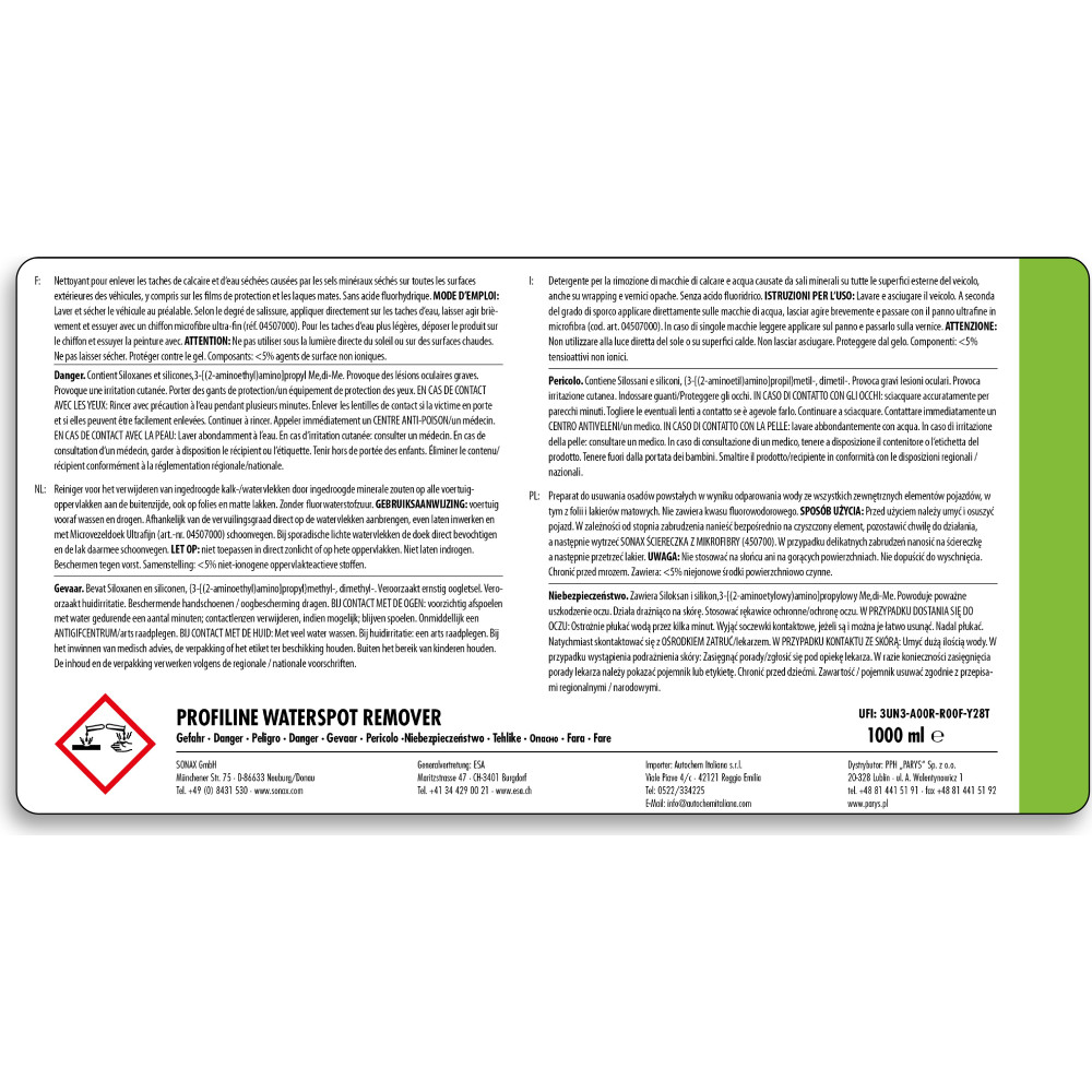 Sonax ProfiLine WaterSpot Remover 1L PROFILINE Waterspot Remover 02753000